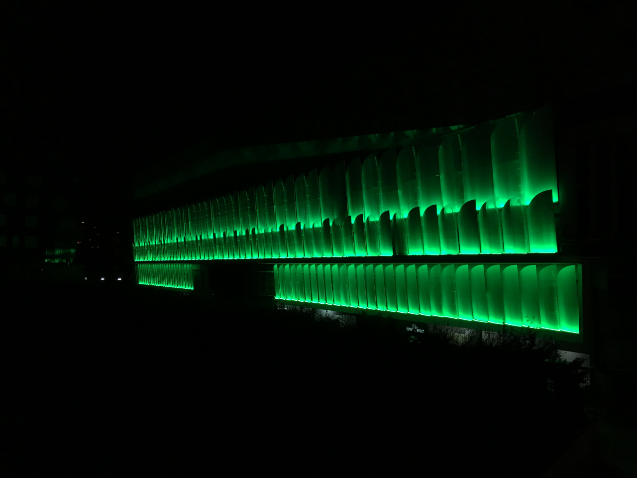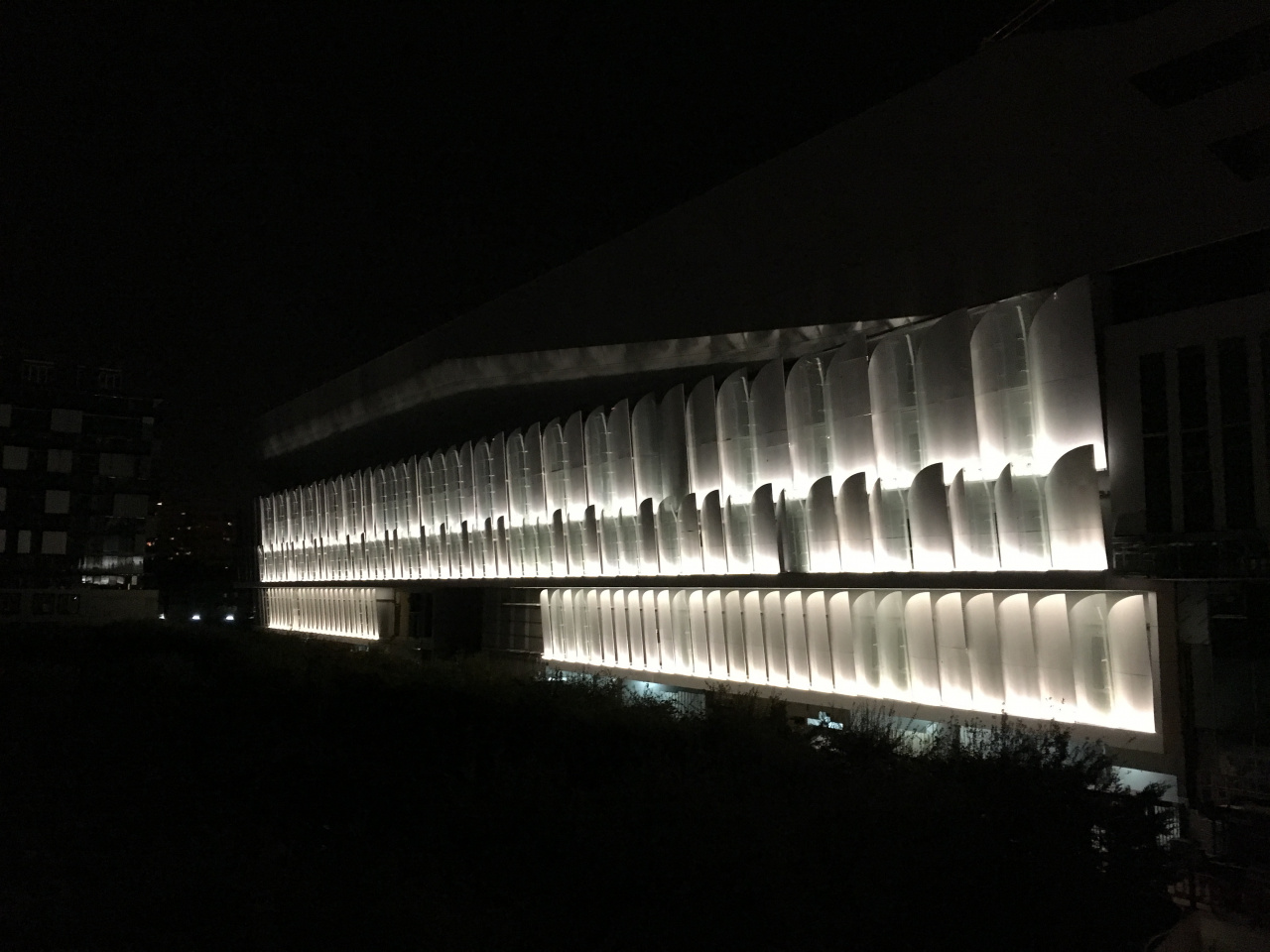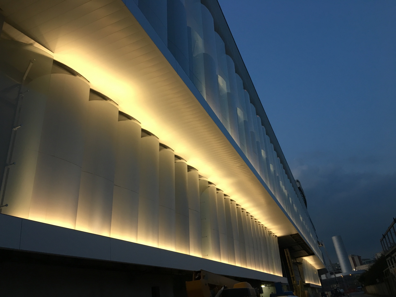 The first lighting test on the east side of Arena92 in Nanterre close to the Paris-La Defense.
