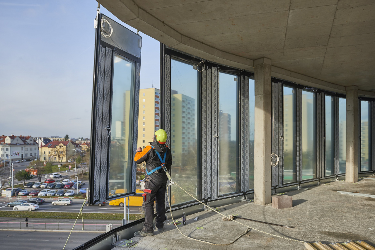 “Pre-production of the unitised façade was performed in our logistics centre of production and storage in Jirny where we are able to complete up to 250 square meters of the modular façade in a controlled environment every day. A test wall was set up at the company seat at Prague 10 for impact tests of both the façade system and facing elements, as their complex shape and larger-than-normal dimensions required a degree of caution when setting up production, handling, and erection procedures,” says Josef Kautský, Project Manager, adding: “Thanks to careful project preparation and good coordination across the entire project team, we are able to supply the work in above-standard quality, in line with defined schedule, and also in line with individual requirements of the client.”