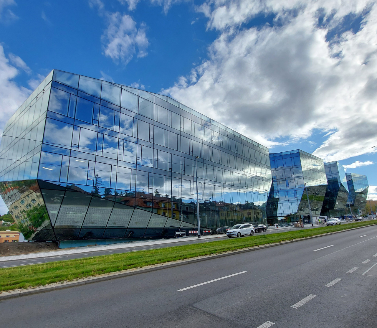 La pose finale a porté sur la modification du tôlage et la pose de la partie attique des modules de garde-corps. À l'intérieur, nous avons ajusté le laminage des verres courbés. Le bâtiment accueille locataires et visiteurs dans un environnement unique, avec 9 000 m² de commerces et jusqu'à 24 000 m² de bureaux. Pour nous, le Centre Bořislavka est une symphonie d'expérience artistique, d'architecture modernes et un exemple d'approche durable. Le hall d'entrée accessible au public est situé sous la lucarne reliant les bâtiments, où un ouvrage en verre conçu par Lasvit la société de design tchèque, également co-créée par Sipral, attire l'attention et constitue un point fort. Conçus par l'architecte paysagiste tchèque Zdeněk Sendler les espaces publics de détente sont des lieux en contact avec la nature pontués d’oeuvres artistiques. L'une d’entre elles est l'œuvre „Na Horu“ de l'artiste Frederic Diaz. Elle évoque la route commerciale vers Velvar qui passait par le site. L'aspect global est magnifié par la vue sur le château de Prague et ses environs, depuis chaque bâtiments, étages et terrasses.