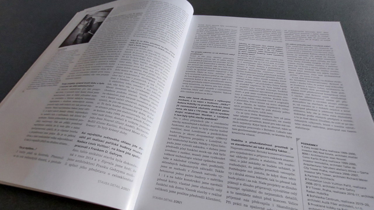 Leopold Bareš a parlé du siège de l'entreprise, de son développement, mais aussi des avantages de l'évolution d'une solution optimale adaptée aux besoins du client - et pas seulement de cela- pour le magazine Stavba Detail 2/2021