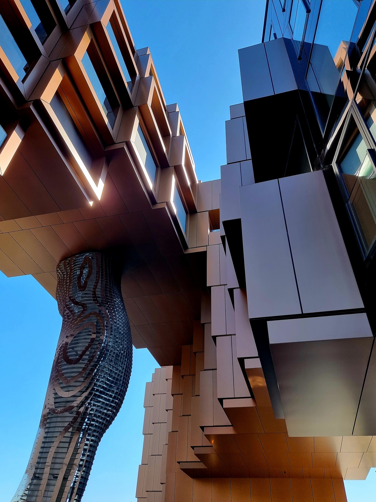 La façade, si originale, est composée de blocs – les Fragments- qui se superposent, et constituent, finalement,  une structure fonctionnelle. Elle symbolise les multiples couches de la vie, qui se décompose en  nombres infinis de petits éléments , alliant l’infime expérience vers la construction  de la vie.